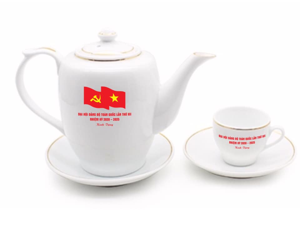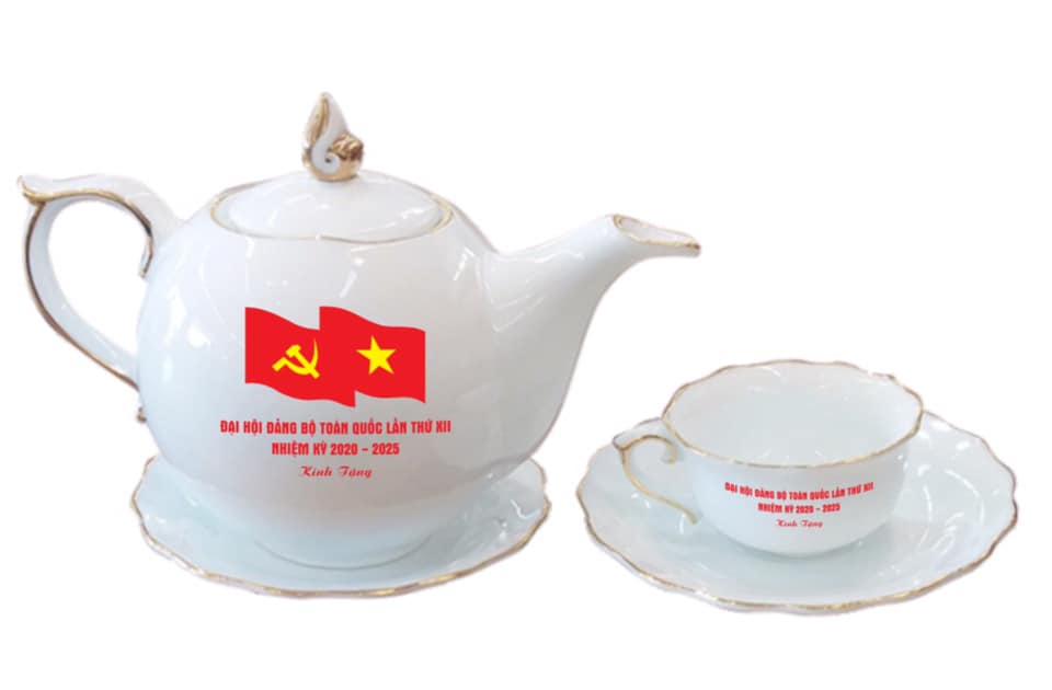 Ấm chén trở thành một trong những sản phẩm quà tặng Đại hội Đảng được tìm kiếm nhiều nhất, ấm chén có nhiều ưu điểm là mẫu mã phong phú,giá cả lại rất phù hợp từ bình dân tới cao cấp
